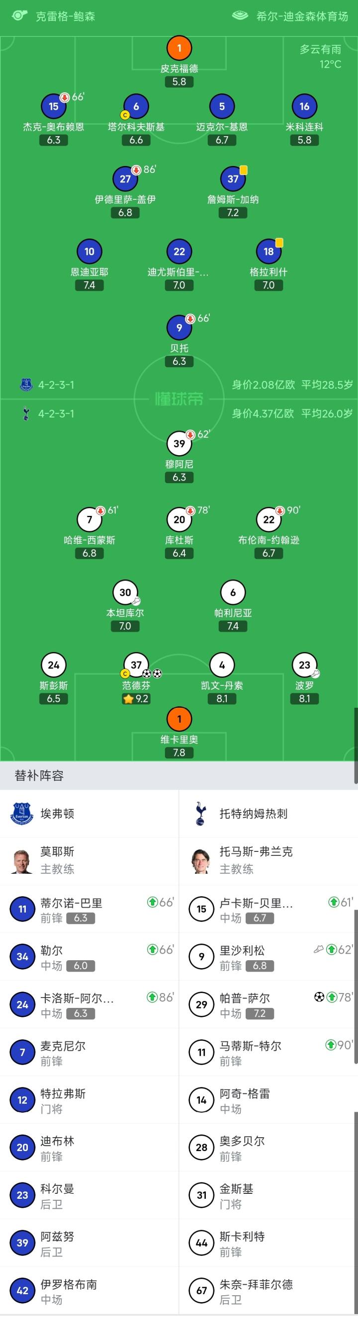 第45+6分钟,波罗再次以角球为笔,范德芬头球双响,热刺2-0领先埃弗顿,如同秋日午后的温暖阳光